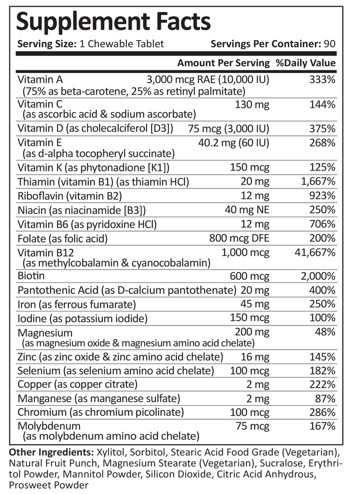 Multivitamin | 45mg Iron | Dye-Free Chewable | Fruit Punch