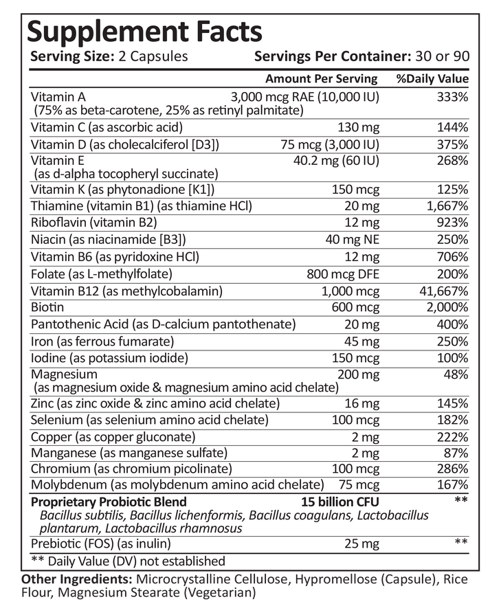 Multivitamin + Probiotics | 45mg Iron | Capsule